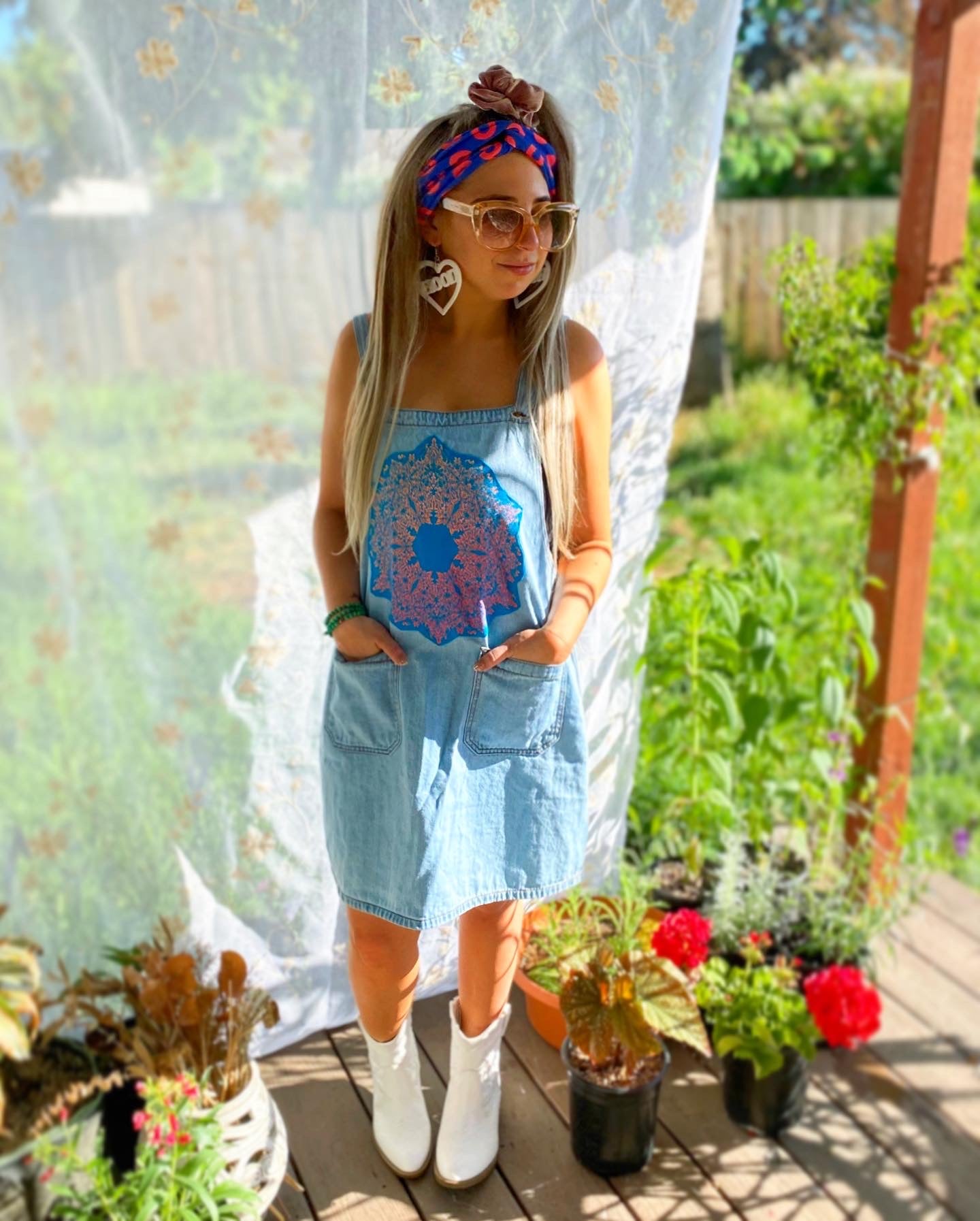 Ombré mandala Phishy phall tour overall dress 🌞 front + back appliqué.