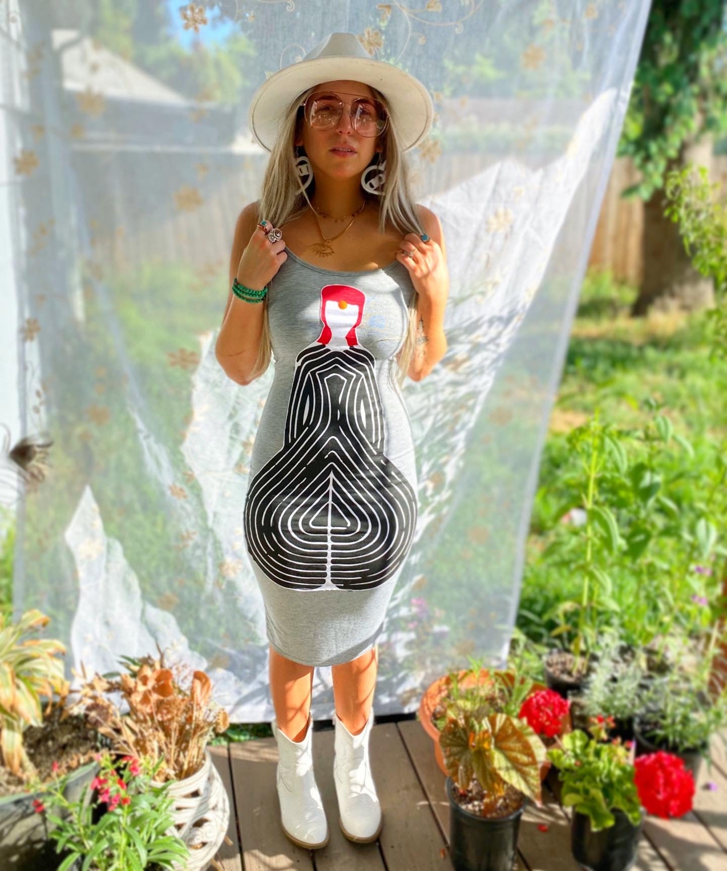 Bodycon dress with Ziggy Stardust appliqué curtesy of Section 119 ✨