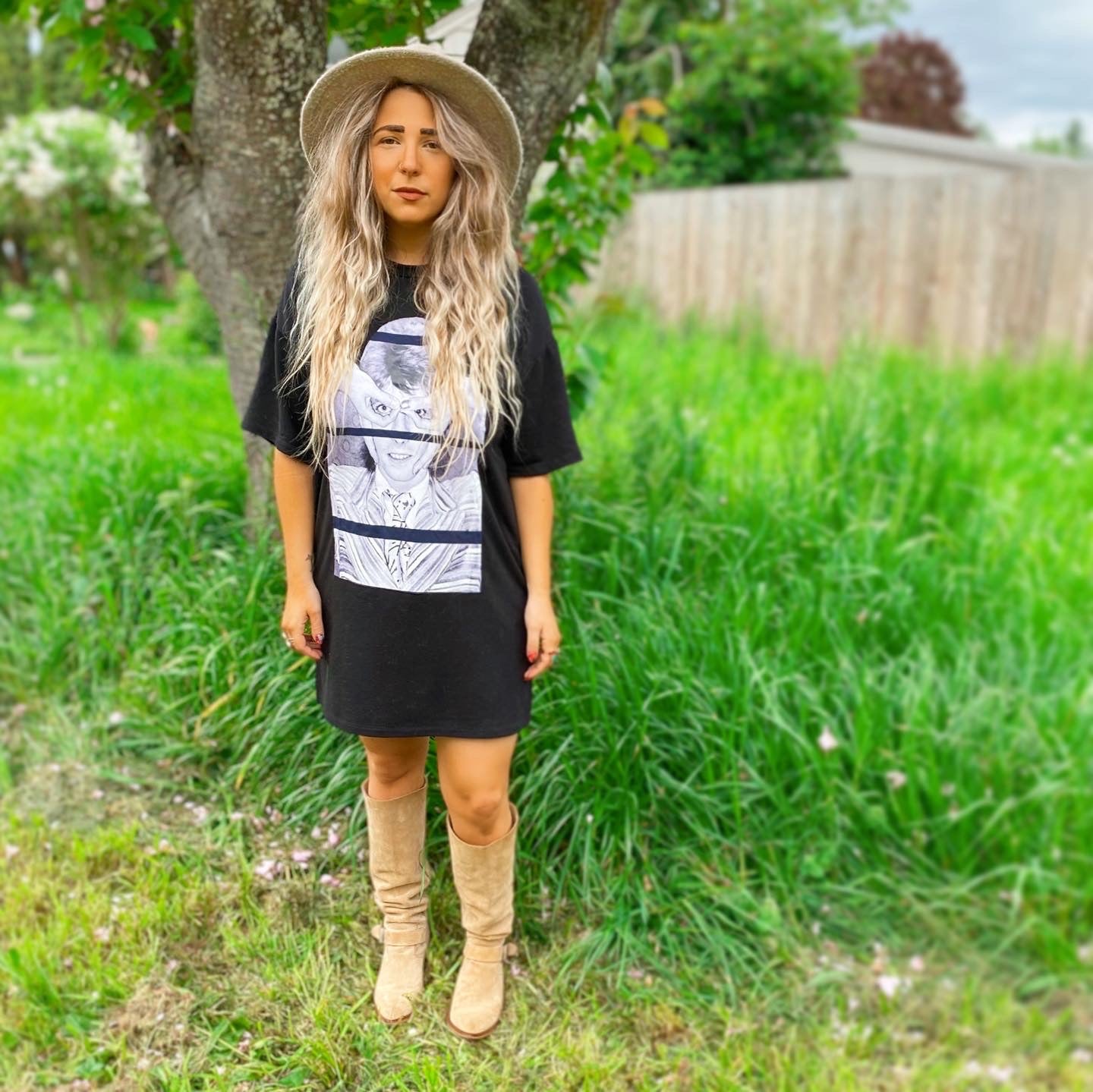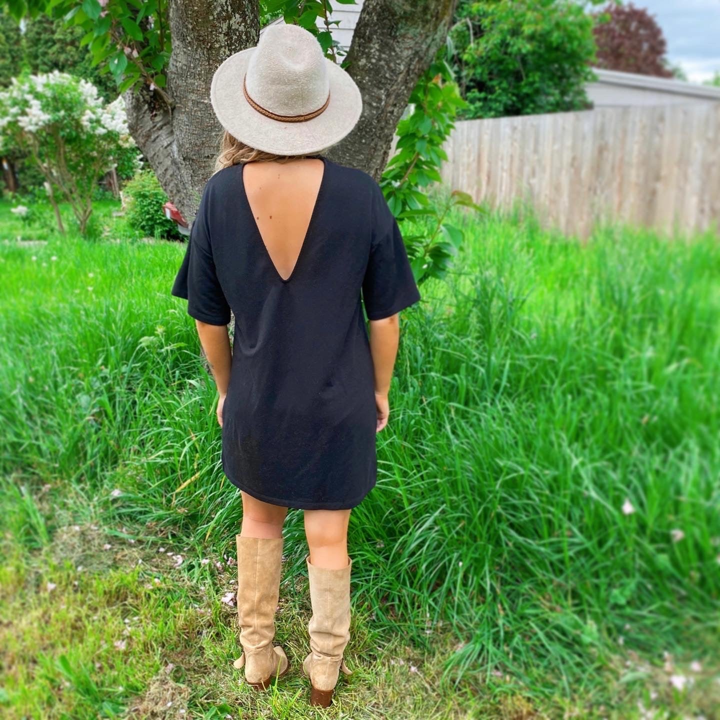 Boxy t-shirt dress with v-back best fits xs-medium for an oversized fit πŸͺ